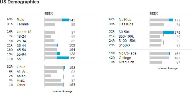 I've included a snapshot of our US demographics which you can target. Most of the customers are from US, UK, Canada and Australia.
